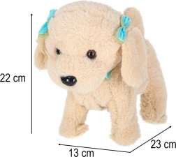 Hračka je vyrobená z mäkkého plyšu v kombinácii s odolným plastom. Napájanie zabezpečujú 3× AA batérie (nie sú súčasťou balenia). Súčasťou je aj štýlové vodítko s dĺžkou 65 cm a farebné doplnky, ktoré dodajú psíkovi jedinečný vzhľad.
