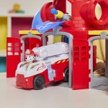 Viacúrovňová remíza s garážami, otváracími prvkami a Marshallovým hasičským vozidlom podporuje nápaditú tímovú hru.