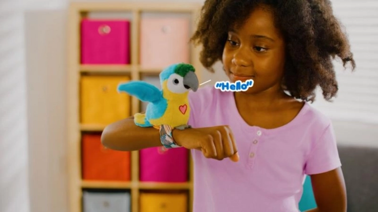 Roztomilý interaktívny papagáj v modrej farbe prináša deťom veľa zábavy. Opakuje slová, spieva vtáčiu pesničku a mávaním krídel oživí každú hru. Vďaka úchytu si ho ľahko pripnete na ruku a užijete si hranie doma aj na cestách.