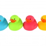 Veselé gumené kačičky do kúpeľa prinesú zábavu do vane, bazéna aj na dovolenke pri mori. Vďaka mäkkému, ľahko stlačiteľnému materiálu sú príjemné do ruky aj pre najmenších a podporujú rozvoj zmyslov a jemnej motoriky. Kompaktná veľkosť 8 × 8 cm a žiarivé farby zaujmú každé dieťa.