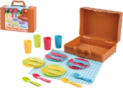 Tento detský piknikový set s košíkom ponúkne malým kuchárom všetko, čo potrebujú k dokonalému pikniku. V odolnom plastovom košíku nájdete tanieriky, poháriky a sady príborov pre štyri osoby a navyše štýlovú deku s kockovaným vzorom. Set je z ľahkého, ľahko umývateľného plastu, vďaka čomu je ideálny na každodennú hru.