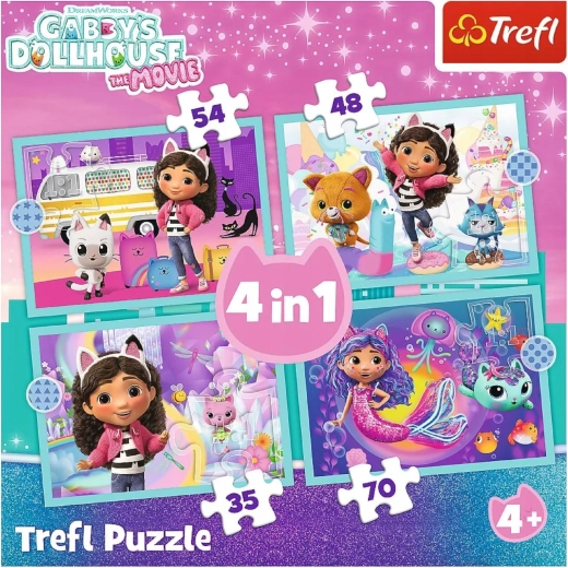 Objavte zábavné a vzdelávacie puzzle 4 v 1 z obľúbeného seriálu Gabiin mačací domček od značky TREFL. Štyri skladačky s rôznou náročnosťou (35, 48, 54 a 70 dielikov) rozvíjajú logiku, trpezlivosť a jemnú motoriku detí od 4 rokov. Vyrobené z odolného, pevného kartónu pre bezpečné a pohodlné hranie.