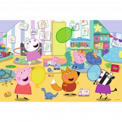 Objavte radosť zo skladania s puzzle pre najmenších s obľúbenou hrdinkou Peppa Pig. Extra veľké dieliky uľahčujú manipuláciu a podporujú rozvoj jemnej motoriky, trpezlivosti a vnímania tvarov a farieb. Vďaka špeciálnemu kalandrovanému papieru znižujúcemu odlesky je skladanie pohodlné a oči sa menej unavia.