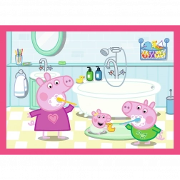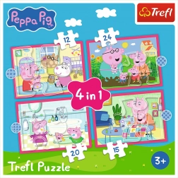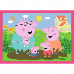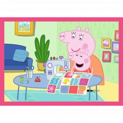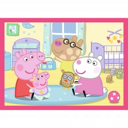 Objavte čaro skladania s obľúbenými hrdinami zo seriálu PEPPA PIG. Táto sada 4 v 1 prináša štyri nezávislé obrázky s odlišným počtom dielikov, vďaka čomu podporuje postupný rozvoj motoriky, trpezlivosti a logického myslenia. Každý dokončený obrázok má veľkosť 285 × 205 mm, ideálnu pre malé rúčky.