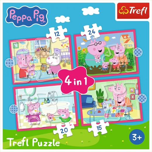 Farebná sada štyroch puzzle s motívmi PEPPA PIG poteší malých milovníkov dobrodružstiev. Obsahuje 4 samostatné skladačky s rôznym počtom dielikov (12, 15, 20 a 24), takže sa hodí pre rôzne úrovne zručností. Po zložení vzniknú obrázky s rozmermi 285 × 205 mm. Vyrobené v Poľsku z ekologických materiálov, vhodné pre deti od 3 rokov.