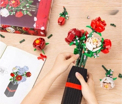 Postavte si vlastnú kvetinovú dekoráciu – kyticu ruží vo váze z 818 dielikov. Stavebnica ponúka realistické tvary a pestré farby, jednoduchý obrázkový návod a výsledok vysoký cca 36 cm. Skvelá na kreatívnu zábavu, rozvoj jemnej motoriky a ako originálny darček pre deti od 6 rokov aj dospelých.