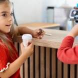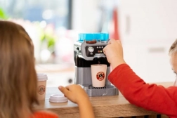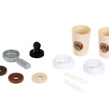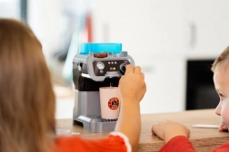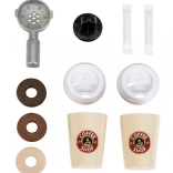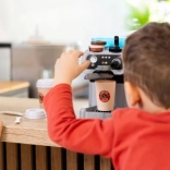 Nádržka na vodu a funkcia prietoku umožní deťom pripraviť „kávu“ do kelímka stlačením tlačidla – rovnako ako v pravej kaviarni.