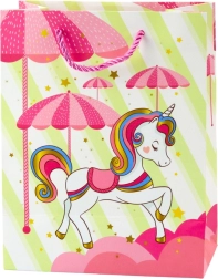 Táto darčeková taška s roztomilým motívom jednorožca je skvelou voľbou pre deti aj dospelých. Je vyrobená z odolného papiera, ktorý bezpečne udrží knihy, kozmetiku, hračky či iné drobnosti. Šnúrkové uško zladené s dizajnom uľahčuje pohodlné nosenie.