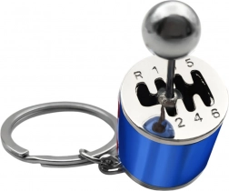Kovový prívesok na kľúče v tvare manuálnej prevodovky – modrý