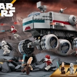 Postavte si ikonický republikový tank Juggernaut a znovu prežite akčné scény zo seriálu STAR WARS: Klonové vojny. Tento detailný 10-kolesový obrnenec ponúka naklápacie riadenie, jednoduchý prístup do interiéru a bohatú výbavu minifigúrok a droidov pre nekonečné akčné bitky a misie.