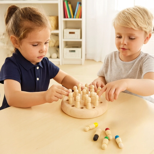 Drevené pamäťové šachy KRUZZEL sú šikovnou variáciou klasickej stolovej hry. Cieľom je podľa hodu kockou nájsť správne figúrky a zapamätať si ich polohu. Tým hráči posilňujú pamäť, logické myslenie a sústredenie. Vďaka pevnému drevenému spracovaniu hra dlho vydrží a je príjemná na dotyk.
