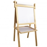 Táto drevená, obojstranná a multifunkčná tabuľa je skvelou pomôckou na rozvoj kreativity, jemnej motoriky a školských zručností. Deti môžu striedať kreslenie fixkou na suché stieranie, písanie kriedou alebo tvorenie na papier z integrovanej roly.