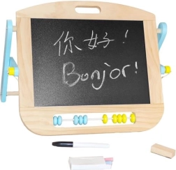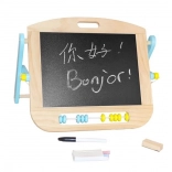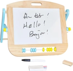 Multifunkčná stolová tabuľa je skvelou pomôckou na prvé kreslenie, písanie aj učenie. Vďaka dvom plochám deti ľahko prepínajú medzi kreslením fixkou a kriedou, trénujú jemnú motoriku a rozvíjajú fantáziu. Integrované dvojfarebné počítadlo podporuje rané matematické zručnosti.