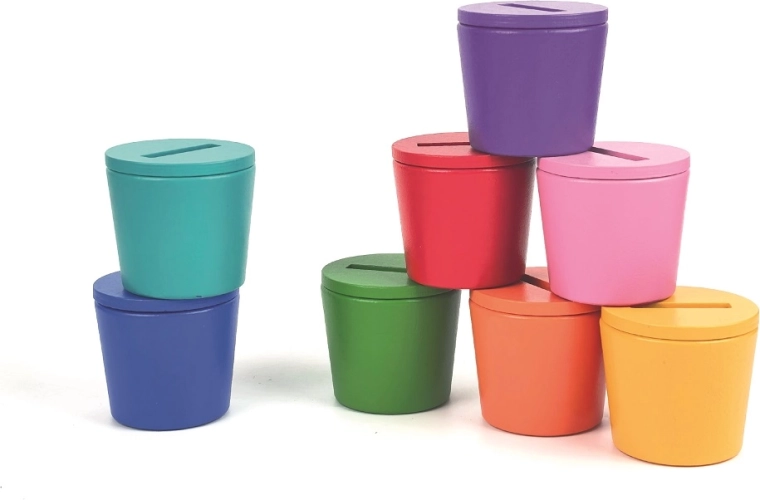 Táto drevená montessori sada prináša deťom hravú formu učenia – triedenie guličiek a „mincí“ do farebných kalíškov, vkladanie cez štrbiny a manipuláciu s rôznymi nástrojmi. Podporuje jemnú motoriku, hmatovú citlivosť a vizuálne vnímanie, a zároveň učí farby a základné princípy triedenia.