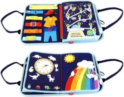 Vo vnútri nájdete aktivity ako gombíky, pracky, zipsy, suché zipsy a šnúrky, ktoré pomáhajú s nácvikom praktických zručností a sebaobsluhy. Vďaka mäkkému prevedeniu je kniha bezpečná, ľahká a vhodná aj na cestovanie.
