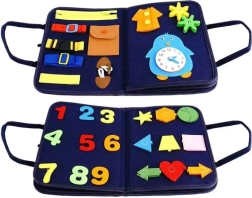 Objavte hravú a vzdelávaciu zábavu so senzomotorickou knihou, ktorá rozvíja detské zručnosti prirodzenou cestou. Vďaka rôznorodým aktivitám ako sú gombíky, pracky, zipsy, suché zipsy či šnúrky si deti precvičia jemnú motoriku, logické myslenie, sústredenie aj zmyslové vnímanie. Téma vodného a dinosauřího sveta podnecuje fantáziu a zvedavosť, zatiaľ čo mäkké a ľahké prevedenie zabezpečuje bezpečné a pohodlné používanie doma aj na cestách.