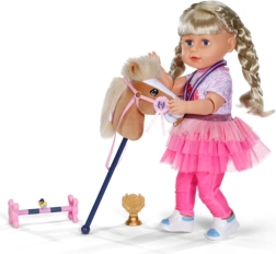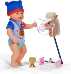 Sada BABY born na hobby horsing umožní bábikám naskočiť do trendu pretekov s koňom na tyči. Mäkká plyšová hlava koňa je bezpečná a príjemná na dotyk, takže sa skvele hodí na každodenné vychádzky aj súťažné disciplíny. Zábavný tréning zaistí obľúbená kačička Berta, ktorá dodá hre hravý charakter.
