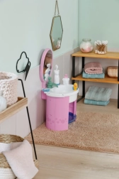 Umývadlo Baby Born prináša deťom autentickú hru na kúpeľňu bez potreby batérií. Vďaka ručnému pumpovaniu tečie do umývadla skutočná voda, ktorú pomáha udržať veselý špunt Berta v podobe kačičky. Deti tak môžu trénovať hygienické návyky svojej bábiky zábavnou a bezpečnou formou.