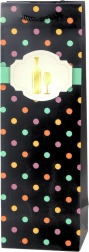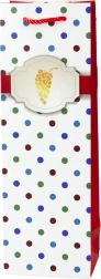 Vďaka rozmerom 35 × 12 × 9 cm je taška dokonale prispôsobená na fľaše a ďalšie vysoké darčeky. Dostupná je v mixe vzorov (biela a čierna s farebnými bodkami) s motívom fľaše a pohára alebo hrozna. Predáva sa po 1 ks; motív je vyberaný náhodne.