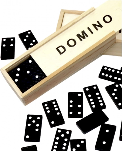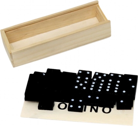 Drevené domino v krabičke, 32 čiernych dielikov. Odolná rodinná hra, ktorá rozvíja logiku, pamäť a koncentráciu. Ideálne na cestovanie aj domácu zábavu.