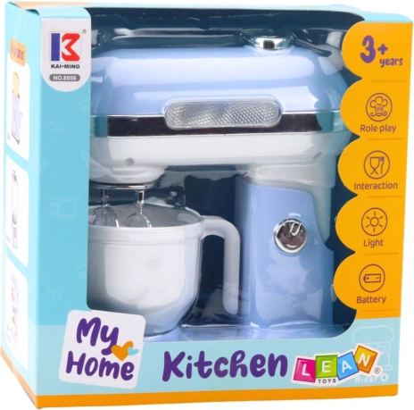 Detský kuchynský mixér s otočnými metlami a svetlami. Realistická hra na varenie, kvalitný plast, kompaktné rozmery. Na 2× AAA batérie.