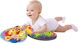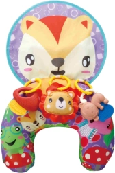 Súčasťou je šuštivá podložka s motívom líšky, ktorá vydáva zvuk pri dotyku, a tri farebné závesy, ktoré možno pripínať na rozvoj koordinácie ruka–oko a jemnej motoriky. Celok spája funkciu hračky, edukačnej podložky aj pohodlnej opory na bezpečné cvičenie.