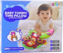 Podporný vankúš pre bábätko je navrhnutý tak, aby podporil správny vývoj od prvých dní života. Ergonomický tvar uľahčuje polohu na brušku, čo prirodzene posilňuje svaly a pripravuje dieťa na ďalšie míľniky ako je sedenie či lozenie. Mäkké a príjemné materiály spolu s kontrastnou farebnosťou podnecujú zrak, sluch aj hmat.