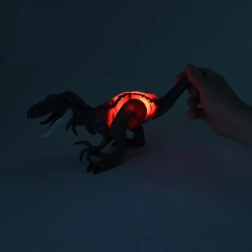 Objavte napínavú hru s realistickým dinosaurom Velociraptor, ktorý ponúka svetelné a zvukové efekty, pohyblivé časti a interaktívne ovládanie. Stačí stlačiť chvost alebo hlavu a hra ožije hrozivým revom, svetlom a pohybom.