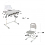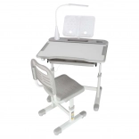 Praktický detský písací stôl so stoličkou a USB LED lampou v sivej farbe vytvorí ergonomické a upravené miesto na učenie aj tvorenie. Výšku stola aj stoličky možno plynule prispôsobiť rastu dieťaťa, nechýba výklopná pracovná doska, veľká zásuvka s organizérom, držiak na tašku, miesto na pohárik a stojan na knihu. LED lampička ponúka 3 režimy svetla a 3 úrovne jasu pre správne osvetlenie cez deň aj v noci.