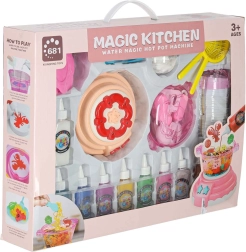 Kúzelná kuchyňa je interaktívny kreatívny set inšpirovaný ázijským hotpotom. Do hrnca so špeciálnym vodným roztokom vložíte formičky naplnené gélom a počas pár sekúnd vzniknú originálne 3D figúrky. Vďaka 12 odtieňom gélov môžete farby ľubovoľne miešať a tvoriť vlastné kombinácie.