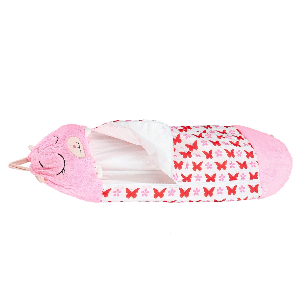 Hľadáte pohodlné a hravé riešenie na detské prespávania? Tento ružový detský spací vak 2 v 1 sa po zložení premení na roztomilé plyšové zvieratko, ktoré si deti zamilujú. Mäkký plyšový povrch a hrejivé výplne z PP vlákien zaistia komfortný spánok po celú noc.