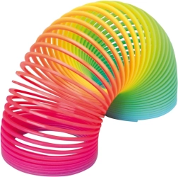 Objavte zábavu s klasickou hračkou – plastová dúhová pružina v štýle legendárnej Slinky. Skvele sa kotúľa po schodoch, hojdá na stole a poskytuje nekonečné hranie v ruke. Podporuje jemnú motoriku, koordináciu pohybov a trpezlivosť.