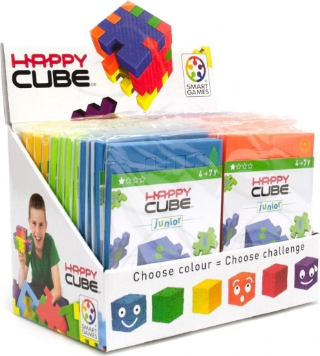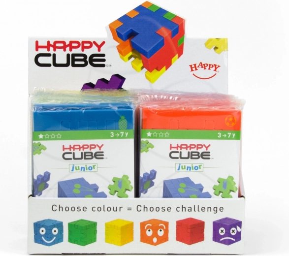 Happy Cube Junior je ideálny prvý 3D hlavolam pre deti približne od 3 do 7 rokov. Zo šiestich farebne zladených dielikov zložíte dokonalú kocku a potom ich znova uložíte späť do plochého rámika. Jednoduchý nápad, ktorý prináša veľa radosti a pomáha rozvíjať jemnú motoriku, koordináciu oko–ruka aj trpezlivosť.