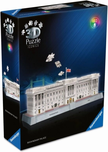 Premeňte svoj interiér elegantným modelom Buckinghamského paláca. Sada z edície Iconics kombinuje presne lisované plastové dieliky pre stabilné a čisté spojenie bez lepidla a dekoratívne LED podsvietenie, ktoré z modelu robí pútavý nočný exponát.