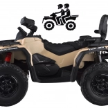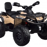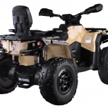 Dvojmiestne detské štvorkolové vozidlo CAN-AM OUTLANDER 4x4 na akumulátor 24V ponúka výkon až 800 W, pohon 2/4 kolies, mäkké kolesá EVA a zadné odpruženie pre pohodlnú a bezpečnú jazdu. Štýlový LED panel s hudbou, USB a FM rádiom, čalúnené dvojité sedadlo z eko kože s pásmi a efektné LED osvetlenie zaručia veľa zábavy na každej vychádzke.