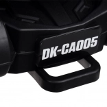 Kokpit s LED panelom ponúka vstavané melódie, USB, MP3, slot pre SD aj FM rádio. Dvojmiestne sedadlo z eko kože s pásmi a madlami pre spolujazdca zvyšuje komfort aj bezpečie. Nechýbajú LED svetlá vpredu aj vzadu a praktický rodičovský ťahací popruh pre prípad vybitia.