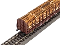 Tento model klanicového vozňa RSBG typu Roos-t642 od značky Piko je ideálny na rozšírenie nákladných súprav v epoše VI. Vozeň je z výroby naložený realistickým drevom a ponúka precízne detaily rámu, klaníc a plošiny pre verný vzhľad na koľajisku.