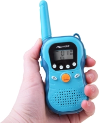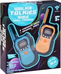 Zábavná sada dvoch detských vysielačiek na hry vonku aj doma s dosahom až 3 km na voľnom priestranstve. Jednoduché ovládanie, 16 frekvencií, regulácia hlasitosti a menič hlasu (chlapec, dievča, robot + originál) zaistia kopu akcie. Nechýba vstupné vyzváňanie (4 tóny), klip na opasok a otvor na pútko – ideálne do záhrady, na pláž, do lesa aj na tajné misie.