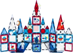 Postavte si rakety, vozidlá, vysoké veže aj fantastické 3D stavby inšpirované vesmírom. Magnetické diely s potlačami astronautov, rakiet a planét motivujú deti k tvorivej hre a príbehom. Priesvitné, viacfarebné prvky vyzerajú skvele na svetle a vďaka silným magnetom držia tvary stabilne.
