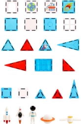 Hračka je vyrobená z kvalitného plastu a magnetov, je odolná a vhodná na každodenné hranie. Je ideálna na rozvoj koordinácie oko–ruka, trpezlivosti a spolupráce v skupine. V balení nájdete rozmanité tvary a užitočné doplnky vrátane figúrky astronauta a podvozku s kolieskami.