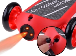 Farebné LED podsvietenie na podvozku aj na riadidlách a vstavaná hudba premenia každú jazdu na malú show – dieťa bude vidieť aj počuť.