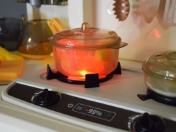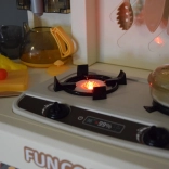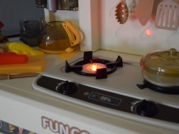 Interaktívny horák ponúka dva režimy: zvuk varenia so svetlom alebo efekt pary so zvukom. Otočné gombíky a panel dodajú hre realistický nádych.
