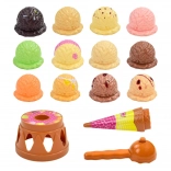 - Hotový set: podstavec, kornút, naberačka a 12 farebných kopčekov.