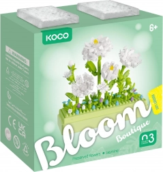 Mini stavebnica KOCO Jazmín je ideálnou voľbou pre všetkých milovníkov kreatívnej tvorby aj štýlového dizajnu. Výsledná kvetina pôsobí elegantne a vynikne na poličke, pracovnom stole aj v detskej izbe. Séria kvetín KOCO ponúka viac druhov, ktoré možno krásne kombinovať a vytvárať tak vlastnú tematickú kolekciu.