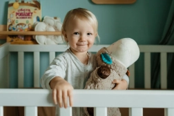 Zabudovaný projektor premieta jemné hviezdičky na strop a steny, ktoré deti prirodzene upokoja a navodia atmosféru na spánok.