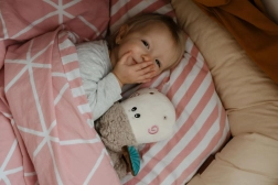 Mäkký plyšový povrch je šetrný k citlivej detskej pokožke a láka k maznaniu – ideálny do postieľky aj na cesty.