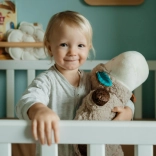 Vďaka mäkučkému plyšu je túlenie s ovečkou maximálne pohodlné, hladké plastové časti sú zaoblené a bezpečné pre malé ruky. Praktická veľkosť 35 × 22 cm padne deťom do náručia a ľahko sa zmestí do postieľky. Ovečka prináša pocit istoty, upokojuje a pomáha vytvoriť príjemné prostredie na spánok.