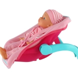 Praktický nosič s madlom a pásmi umožňuje bábiku pohodlne prenášať, posadzovať aj jemne pohupovať – ideálne na hru doma aj na cestách.