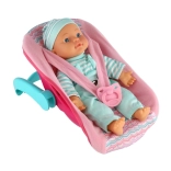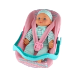Súčasťou balenia je praktický nosič/autosedačka s pohodlným madlom a bezpečnostnými pásmi, ktoré umožnia bábiku ľahko prenášať, posadiť alebo jemne pohojdať. Nechýba ani cumlík – ideálny doplnok na upokojenie a uspanie. Hra s bábikou podporuje rozvoj jemnej motoriky, komunikácie a empatie.