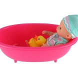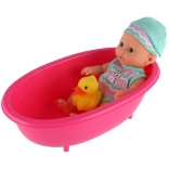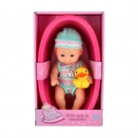 - Kompletný set: bábika, plastová vanička, žltá kačička